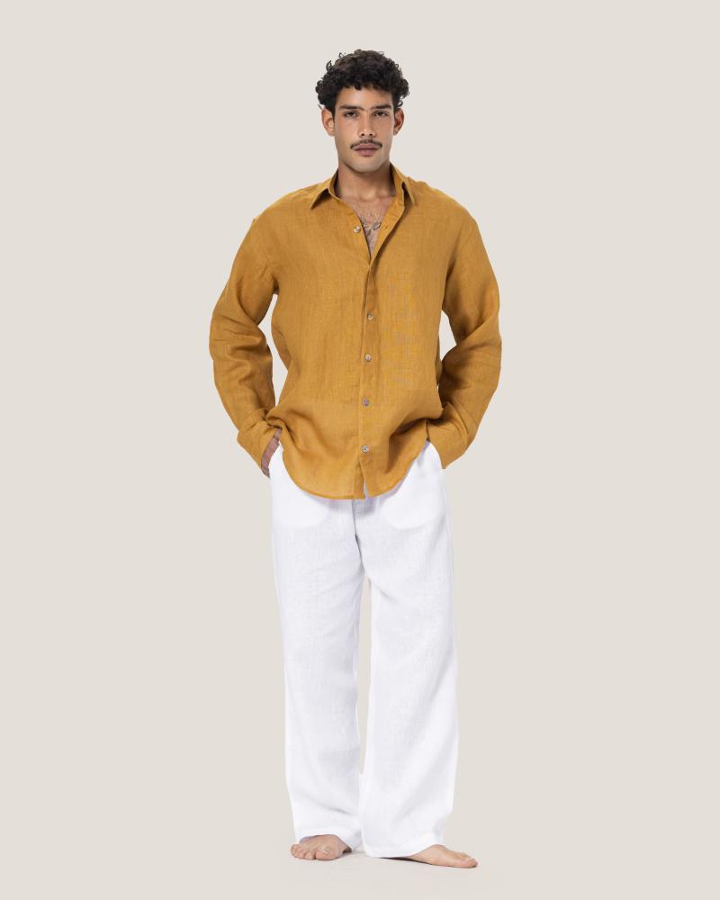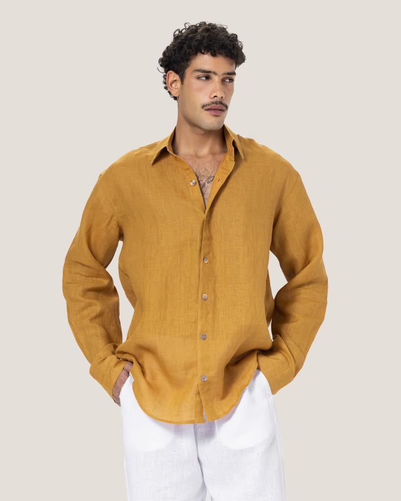 القميص مصنوع من قماش لينن طبيعي 100%، يناسب يومك, يجمع بين الاناقة والراحة.